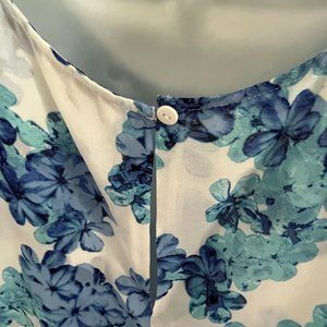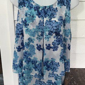 Lex & Madison Blue and White Sleeveless Sheer Layered Blouse/Top