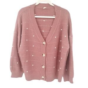 LexBrown Womens Oversized Button Front Knit Cardigan Sweater Size M/L Mauve