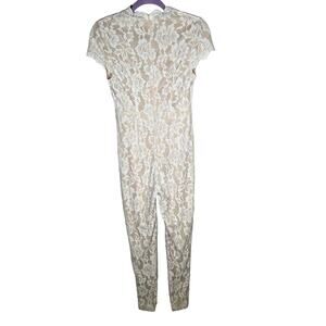 Lexi Drew Women's Short Sleeve Deep V Neck White Lace Jumpsuit Small