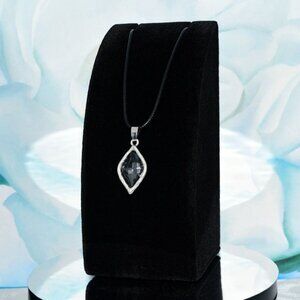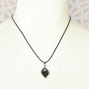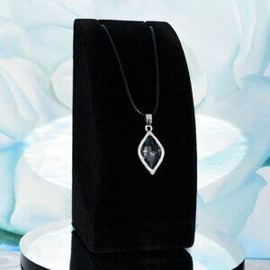 Lexie Sapphire Gray Rhombus Crystal Charm Pendant Leather Necklace Gift Boxed