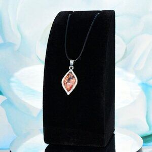 Lexie Tourmaline Pink Rhombus Crystal Charm Pendant Leather Necklace Gift Boxed
