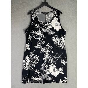 Lexington Avenue Women’s 1X Black White Floral Shift Dress Sleeveless USA Made