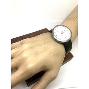 Lexon Takashi Kato Tao Unisex Watch Quartz Silver Dial Black Leather Band 36mm (G9529)