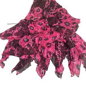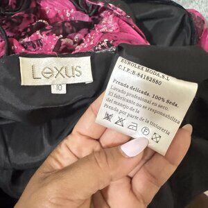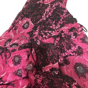 Lexus Women's Pink Black Silk Double Straps Floral Beaded Long Dress Size UK 10