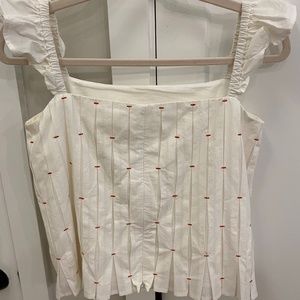 butterfly sleeve, white top with red stitching