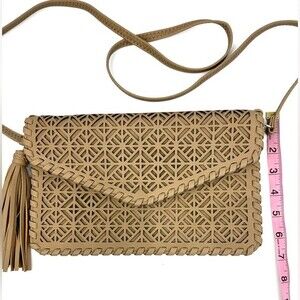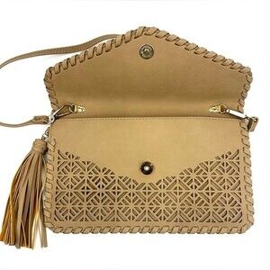 Leyla Laser Cut Envelope Clutch/Crossbody Tan NWOT