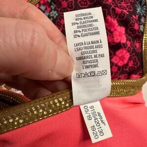 Brand new with tags! Step into summer with this Aerie scoop neck bikini top in a vibrant floral print with eye-catching gold-lined straps. Perfectly sized in Large, this flattering swimwear staple offers comfortable, stylish coverage and timeless appeal.
