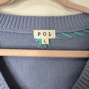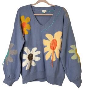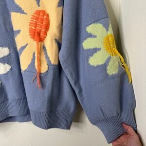 Lg POL Good Mood Flower Sweater Blue Retro Floral Pullover knit Cottagecore Boho