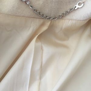 Vintage coat in cream with full lining and neck chain. Gorgeous and in mint condition. Super warm. No size listed but I am a size 14 and wear Lg and XL clothes and this is a perfect fit on me.