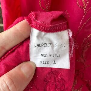 Lg VTG Philippe Matignon Sheer Pink Maxi Dress Gold Embroidery Romantic Ethereal