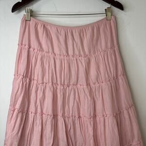 Lg Y2K VTG Forever 21 Powder Pink Tiered Maxi Skirt Boho Lace Beaded Cottagecore