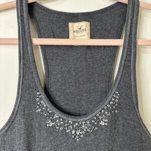 Lg Y2K VTG Ribbed Grey Tank Top Rhinestone Sequin Fitted Bling Layering Stretchy