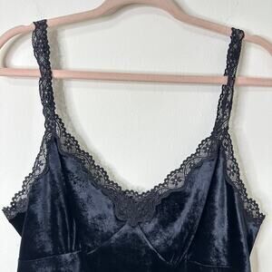 Lg Y2k Express Black Velvet Cami Babydoll Lace Glam Luxe Goth Feminine Romantic