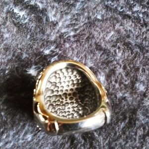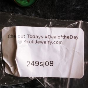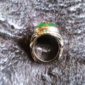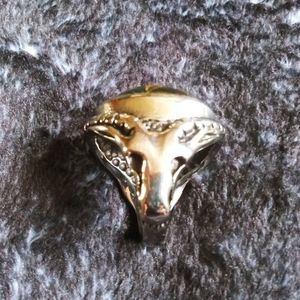 Lg size 8 steel ring with green stone and a goats head on each side with horns connecting the two. New and mark free.
