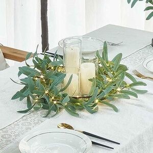 【Flexible Branches】: Grey green olive leaves add a fullness for the christmas garland. Flexible but sturdy branches ensure to shape at will. Circle the garland lights and use as a lighted wreath