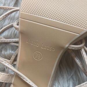 Lhamo Latso Lace Up Strappy Nude Block High Heels Square Open Toe Chunky Sandal