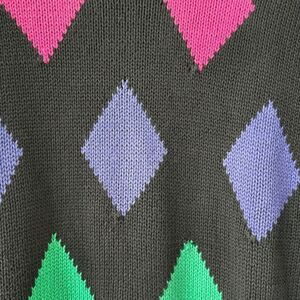 Multicolor Argyle Pattern: The sweater features a multicolor argyle pattern that typically consists of diamond-shaped motifs in various colors.