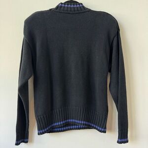 Li2sport Women's Cable Knit Multicolor Argyle Pattern Blue Black Rib Turtleneck Sweater Size L