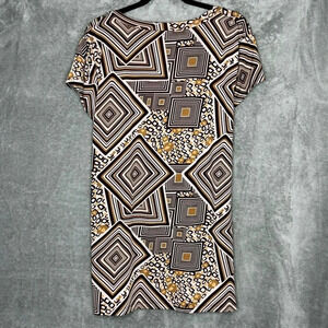 Lia Lee 2X Shirt Top Brown Geometric Cap Short Sleeve Scoop Neck Stretch Womens