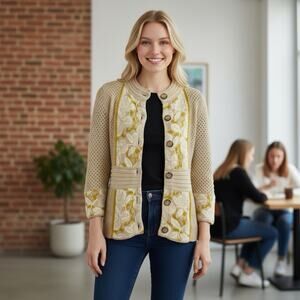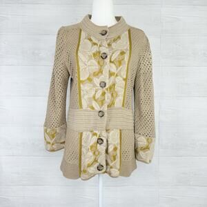 Lia Molly Anthropologie Cardigan Sz Large Aestival Yellow Tan Wool Blend Artsy
