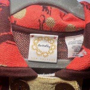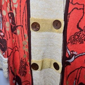 Lia Molly Anthropologie Sweater Monkey Print Double Button Gold Tan Red/Brown