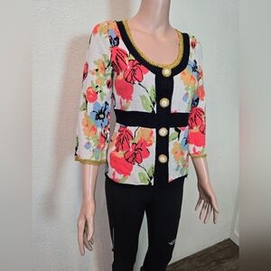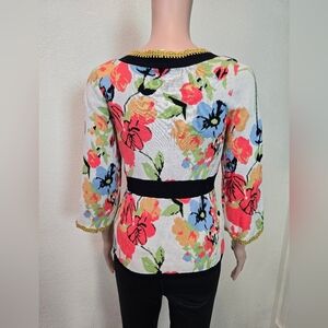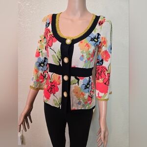 Lia Molly New Orleans Anthropologie floral knit cardigan sweater Size Small