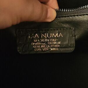 Lia Numa Black Leather Croc Embossed Tote Bag Made in Italy
