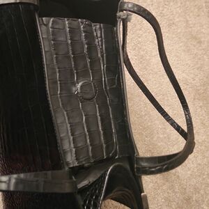 Black leather croc embossed bag (not real crocodile!).