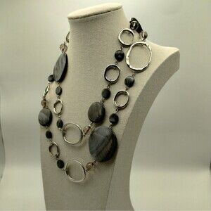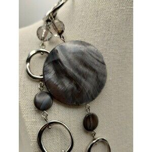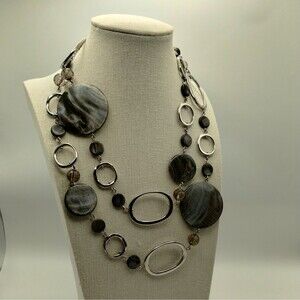 Lia Sophia 2010 Necklace Mother of Pearl Silvertone 40" Long Disks Retired