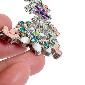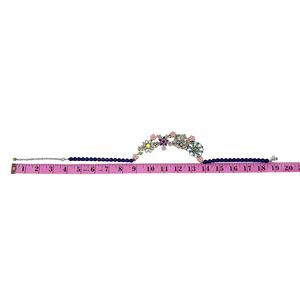 Lia Sophia 3D Flower Rhinestone Statement Bib Necklace w Blue Beads Silvertone