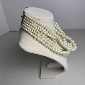 Lia Sophia 6 Strand Bib Necklace Faux Pearl Layered Statement Jewelry Bridal Bride Fashion