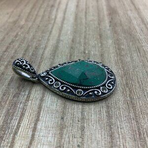 Lia Sophia "Amazonia" Green Teardrop Silver Tone Pendant