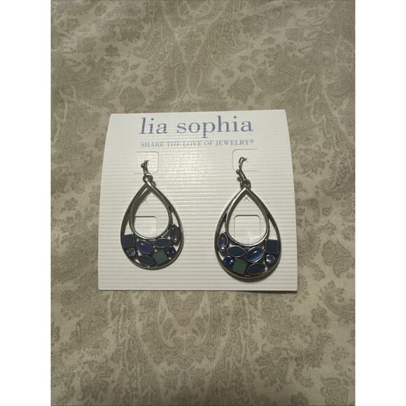The Lia Sophia "Atlantis" Silver-Tone Blue Crystals & Resin Dangle Hook Earrings feature a multicolor design with blue crystals and resin accents. The earrings are secured with a hook closure and showcase a dangle/drop style. The main stone color is blue, and the material used is glass. Perfect for adding a touch of elegance to any outfit, these earrings are a stylish accessory for any jewelry collection.