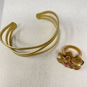 Lia Sophia Azalea Ring Size 10 Trance Slide Bracelet Set of 2 Gold-Tone Retired