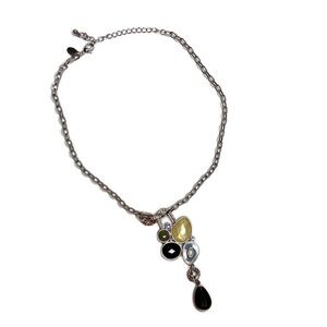 Lia Sophia Azure Y Drop Faceted Bejeweled Cluster Necklace. Great preowned condition. Silver tone with Genuine Mother-of-Pearl, Cut Crystals and Resin Stones in shades of Blue. “Y" Style with non-detachable pendant. Lobster claw closure.