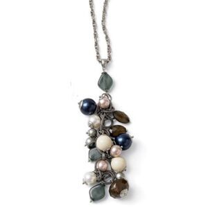 Lia Sophia BAUBLES Retired long textured silver glass & resin beads necklace NWT