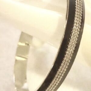 This elegant bangle bracelet, from Lia Sophia, exudes sophistication and contemporary style. The black enamel inlay provides a sleek, glossy finish, creating a striking contrast against the silvertone metal. A central band of textured, raised dot detailing adds a touch of intricate craftsmanship and visual interest. The combination of modern design elements and timeless materials makes this bracelet a versatile accessory, perfect for both casual and formal occasions. Its durable construction ensures lasting quality while maintaining a lightweight feel for comfortable wear. A standout piece for any jewelry collection. 2 3/4" D NWOT
