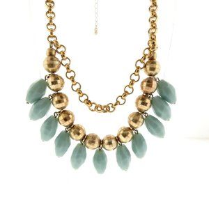 Lia Sophia Bib Necklace Light Blue & Matte Gold Tones Layered NWT Perfect