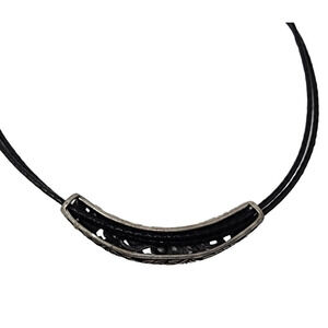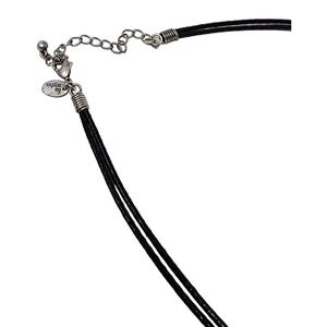 Finish Color: (Faux?) Black Leather, Antiqued Silver Pendant designed with Flowers and Crystals