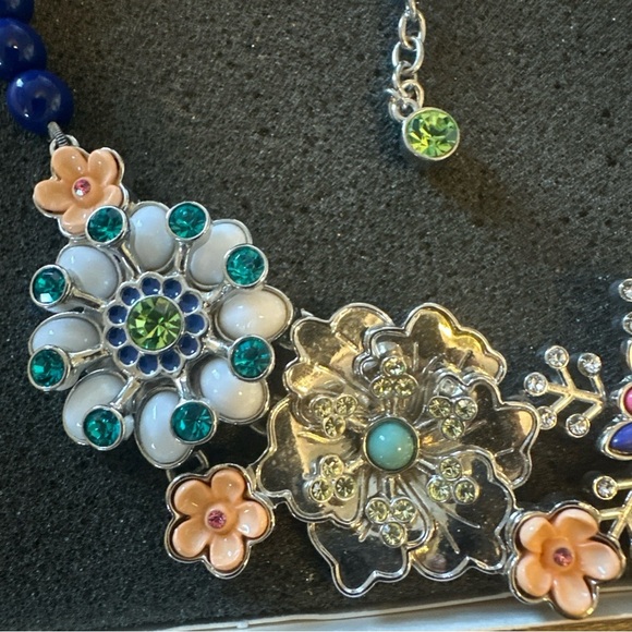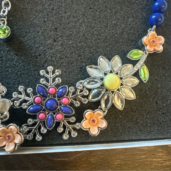 Lia Sophia Blue Pink Floral Necklace Statement Design party spring
