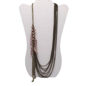 Lia Sophia Blushing Multi-Strand Antique Gold Chain Necklace With Pink Crystal