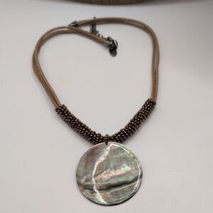 Lia Sophia Brown Necklace with Circular Shell Pendant and Earthy Tones