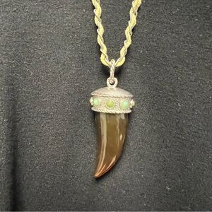 Lia Sophia CORNUCOPIA $78 in catalog Resin Horn Necklace w/ Green Accents NWT🏷