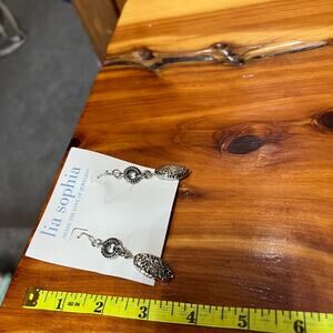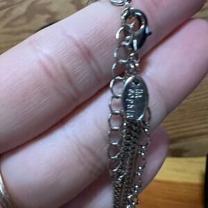 Lia Sophia "charade" silver tone with black accent beading necklace and earrings set, multi strand layered necklace with dangle earrings, both items maker signed. Set is new with tags.