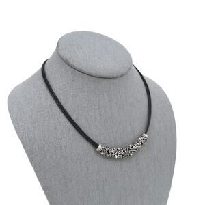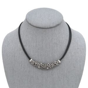 Lia Sophia Choker Necklace Magnolia Floral Rhinestone Focal on Black Cord