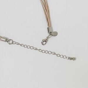 Lia Sophia Cobble Hill Necklace Multi Strand Beige Cord Silver Tone Adjustable