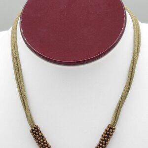 Lia Sophia Corded Bronze Beaded Necklace MOP Mother of Pearl Pendant 16 in