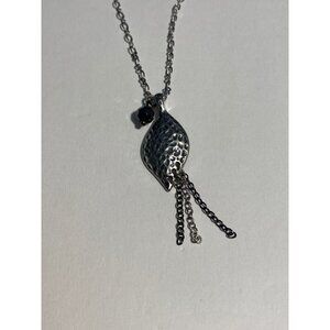 Lia Sophia Fine Art Necklace W/ Shell Pendant & Glass Bead Adjustable Chain Sliver Tone
