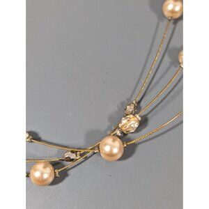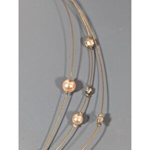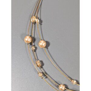 Lia Sophia Golden Faux Pearl Multi Wire Necklace Coastal Chic 19"