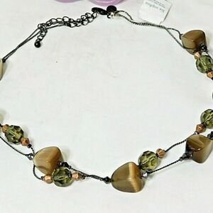 Lia Sophia JAVA Necklace, Glass Cat's Eye, Brown, 16-19", NWT